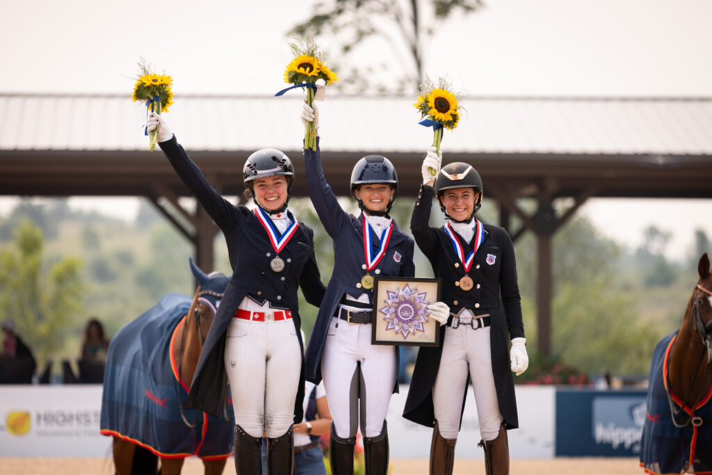 Traverse City, MI – August 2, 2025—The Discover Dressage/FEI North American Youth Dressage Championship presented by USDF crowned two new individual champions today in the Young Rider and Children’s divisions, as well as a new U25 Grand Prix Freestyle champion, with top scores giving a glimpse of a bright future for North American youth dressage.