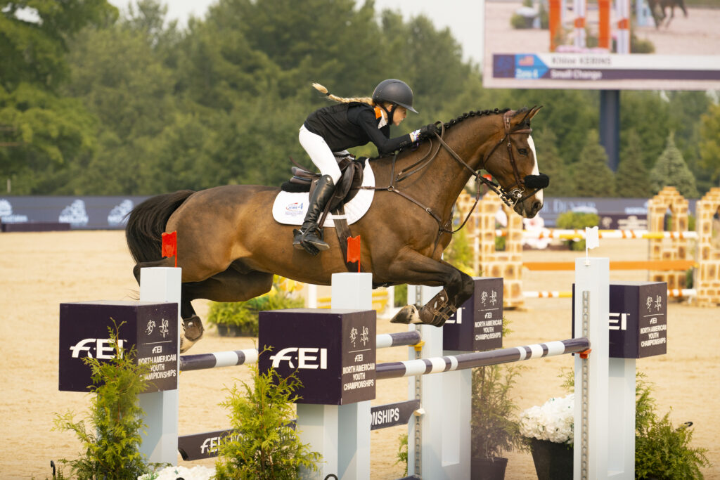 Traverse City, MI – August 2, 2025—Individual medals were awarded in the children’s and pre-junior categories on Saturday at the 2025 Gotham North/FEI North American Youth Jumping Championships (NAYC), presented by USHJA, hosted by Traverse City Horse Shows during week five of the Great Lakes Equestrian Festival, presented by B&D Builders.