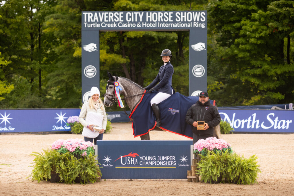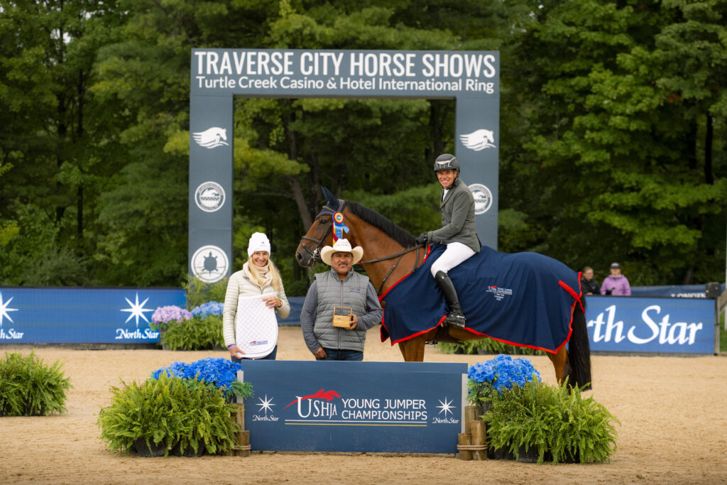 Traverse City, MI – September 6, 2025—Final accolades were presented in the $100,000 USHJA Young Jumper Championship, presented by North Star, on Saturday as young horses were in the spotlight during opening week of the Traverse City Tournament of Champions at Flintfields Horse Park.