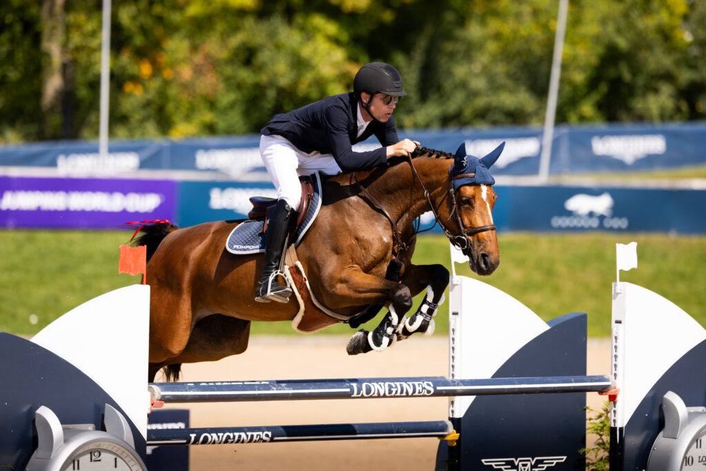Traverse City, MI – September 13, 2025—Karl Cook wrote another chapter in Kalinka van’t Zorgvliet’s comeback story at Flintfields Horse Park on Saturday with a win in the $62,500 Mercantile Bank CSI5*-W Winning Round. The penultimate week of the Traverse City Tournament of Champions also marks the launch of the Longines FEI Jumping World Cup™ North American League season.